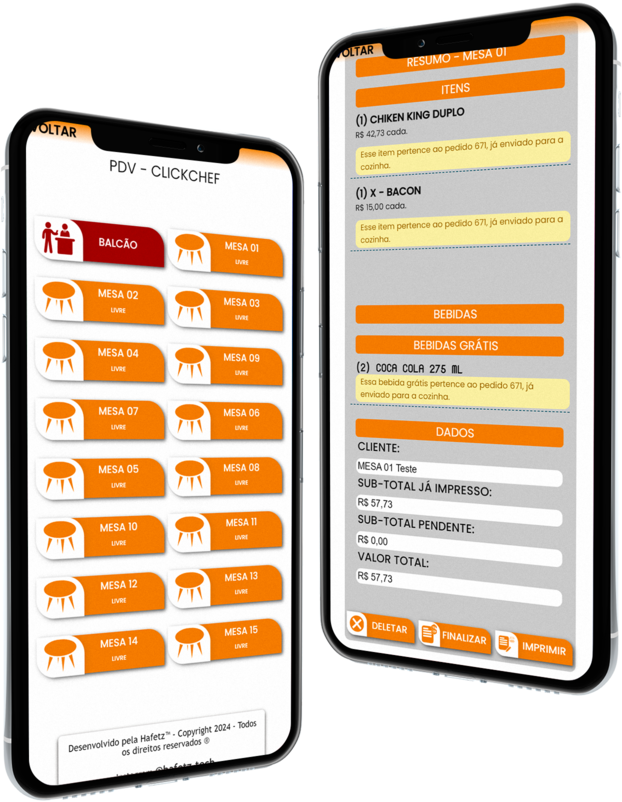 PDV para uso no balcão ou no celular do garçom incluso no sistema. Sem custo adicional!